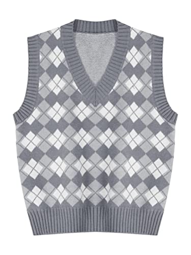 More information about Aislor Boys' Uniform V-Neck Sweater Vest Knitted Sweater Sleeveless Argyle Plaid Print Pullover Tank Crop Top Knitwear