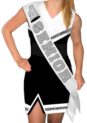 • QUALITY BEYOND YOUR EXPECTATIONS: This silver, black, and white cheer captain senior 2026 sash is made from the most premium quality materials. This soft sash comes in a variety of colorways that coordinates perfectly with most cheerleader uniforms and gear.