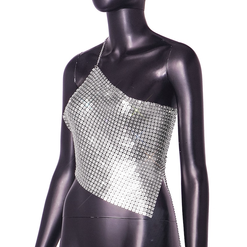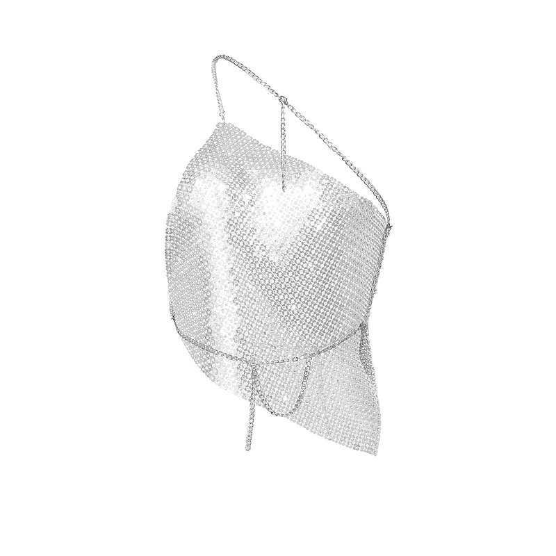 Metallic Backless Sparkle Camisole Body Chain Crop Tank Top Disco Fancy Dress Women's Party Club Adults' Tank Top 11