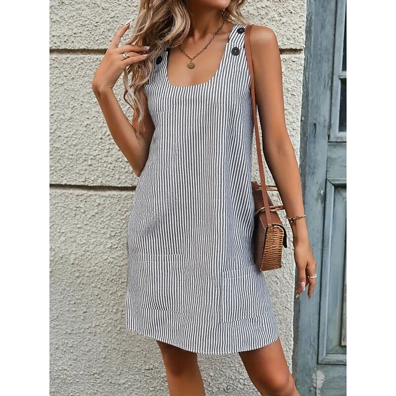 Women's Mini Dress Shift Dress Slip Dress Casual Outdoor Going out Regular Fit Stripe Sleeveless U Neck Black Pink Red Blue Summer 12