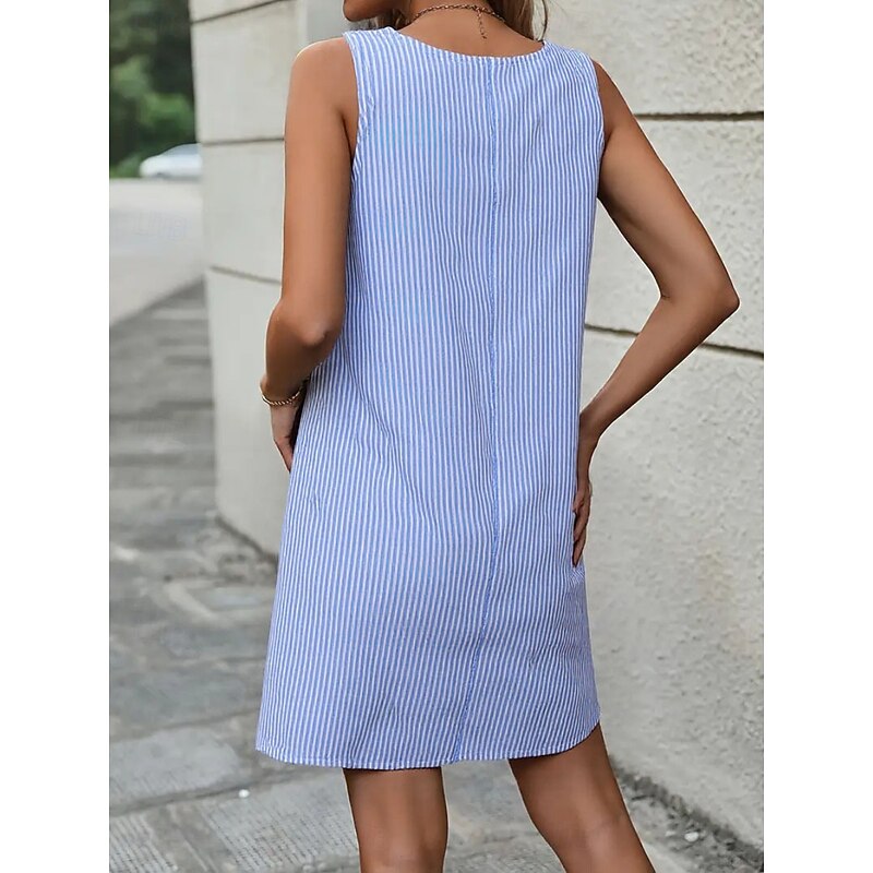 Women's Mini Dress Shift Dress Slip Dress Casual Outdoor Going out Regular Fit Stripe Sleeveless U Neck Black Pink Red Blue Summer 10