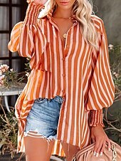 More information about Women's Shirt Blouse Striped Stylish Casual Long Sleeve Shirt Collar Regular Tops Daily Pocket Print White Orange Summer Spring