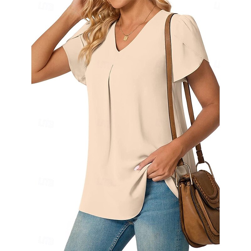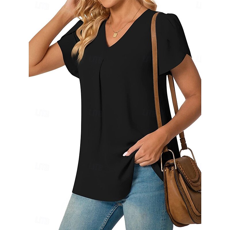 Women's Blouse Solid Color Basic Casual Short Sleeve V Neck Regular Tops Daily Black White Red Navy Blue Blue Summer 24