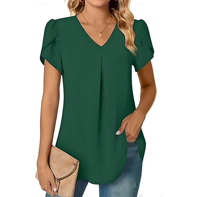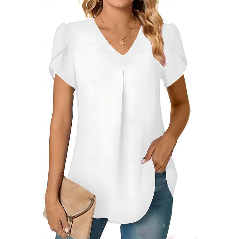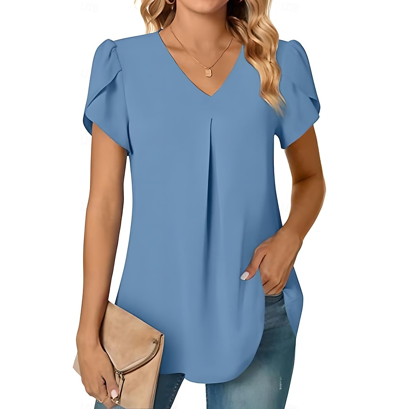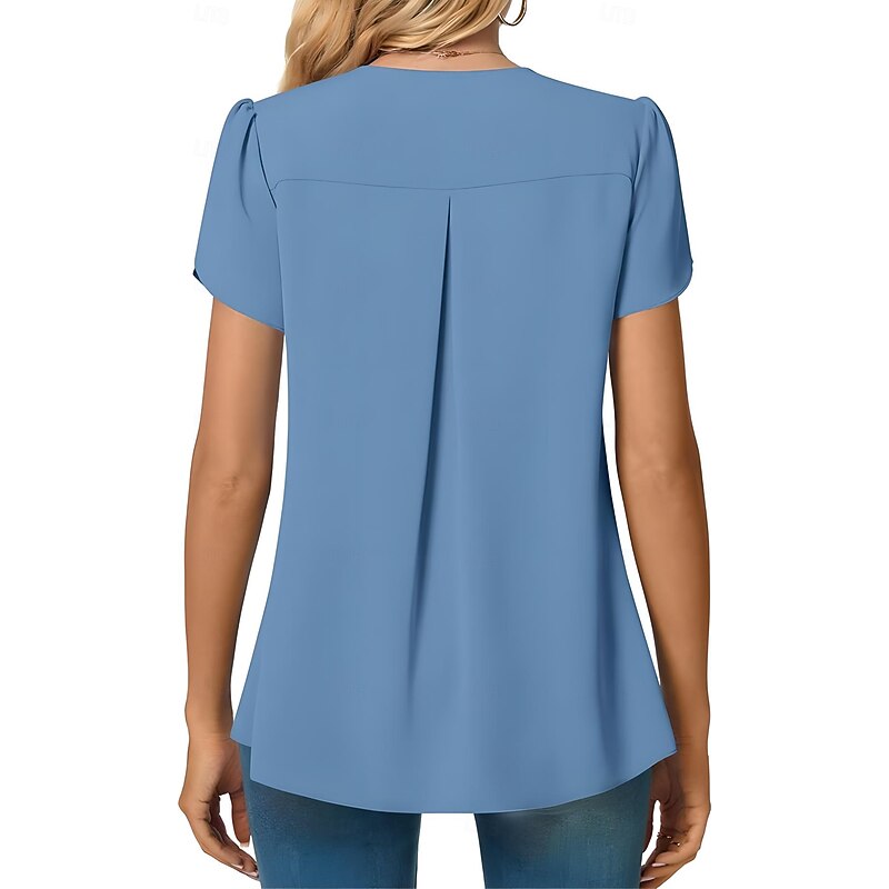 More information about Women's Blouse Solid Color Basic Casual Short Sleeve V Neck Regular Tops Daily Black White Red Navy Blue Blue Summer