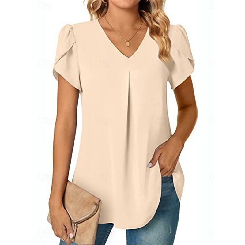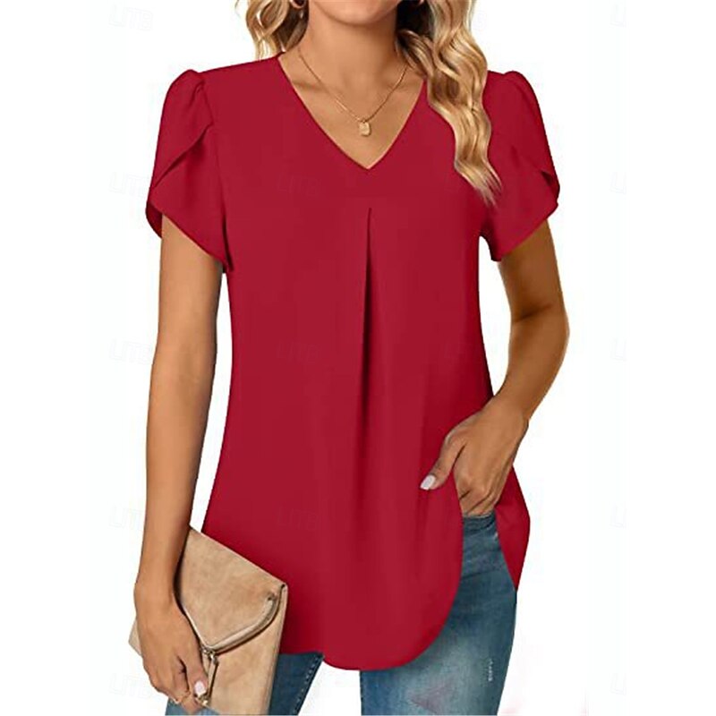 Women's Blouse Solid Color Basic Casual Short Sleeve V Neck Regular Tops Daily Black White Red Navy Blue Blue Summer 23