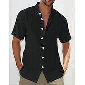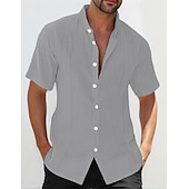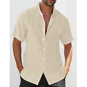 More information about Men's Linen Shirt Guayabera Shirt Band Collar Shirt Summer Shirt Beach Wear Casual Shirt Plain Casual Daily Black White Blue Green Short Sleeve Stand Collar Summer Clothing Apparel