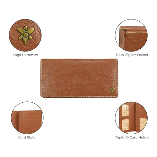 HOT ! Anna by Anuschka Heritage Collection Women's Genuine Leather RFID Blocking Bi-Fold Clutch Wallet - Floral Embossed Hazelnut