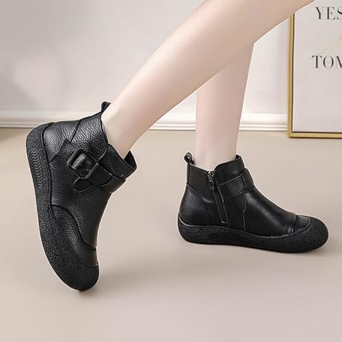 Women's Vintage Leather Casual Ankle-Support Boots,Comfy Warm Waterproof Non-slip Softsole Buckle Zipper Short Booties 6