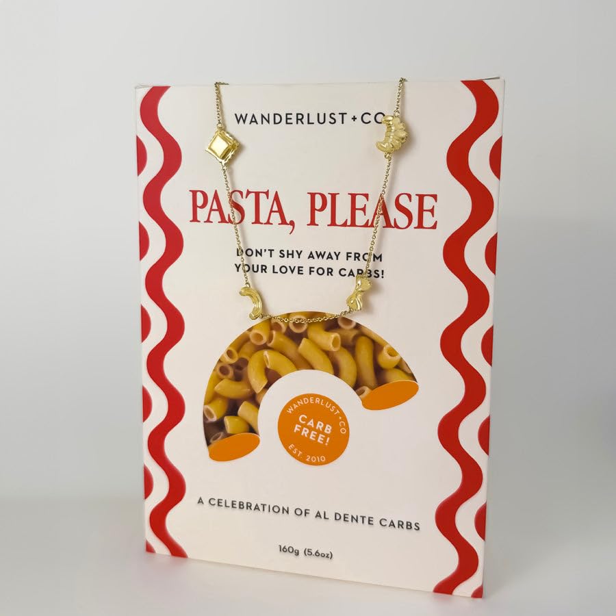 • Featuring a delightful mix of iconic food shapes – Bow Tie Pasta, Macaroni, Ravioli, and a Croissant – this necklace is a fun, nostalgic reminder of all the little things we loved growing up. Each charm is carefully crafted in a gleaming 14K champagne gold, giving these quirky designs an elegant touch. Whether you’re reminiscing about your favorite comfort foods or celebrating the colorful vibes of the past, this necklace is perfect for adding a pop of nostalgia to your everyday look.