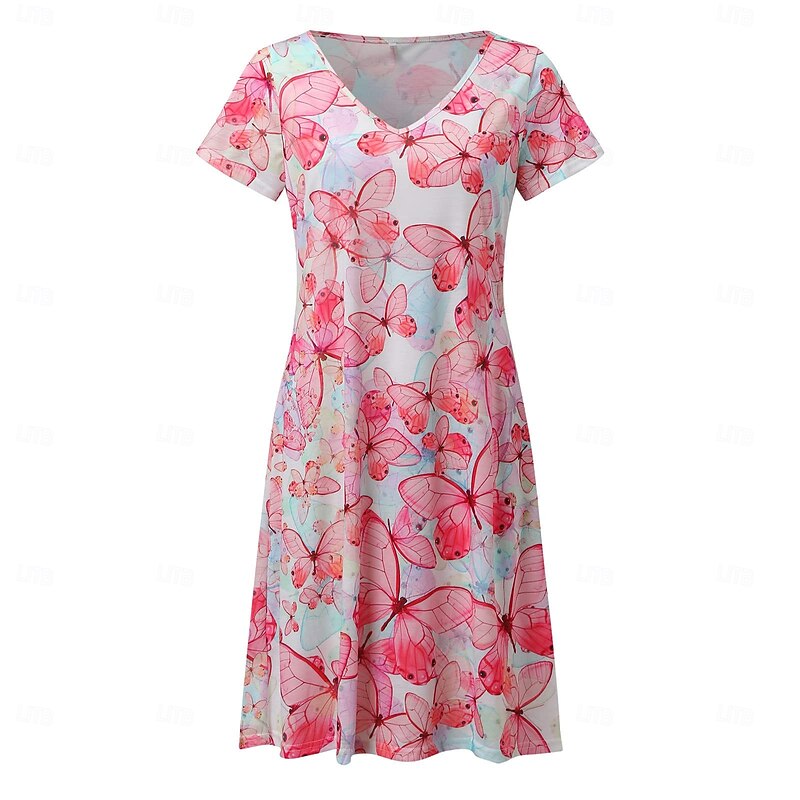 Highlights - Perfect for all seasons: Spring, Summer, and Fall - Made of high-quality polyester fabric - Features short sleeves for a comfortable fit - Designed for women who love stylish, casual, tropical, bohemian, and elegant fashion - Suitable for various occasions including vacations, daily wear, work, beach days, and lounging at home - Loose fit for a relaxed and comfortable look - Sundress style with beautiful floral and geometric patterns - Unique patchwork and print design for a trendy look - Flattering V neck and butterfly sleeves - Midi dress length for a chic and feminine silhouette