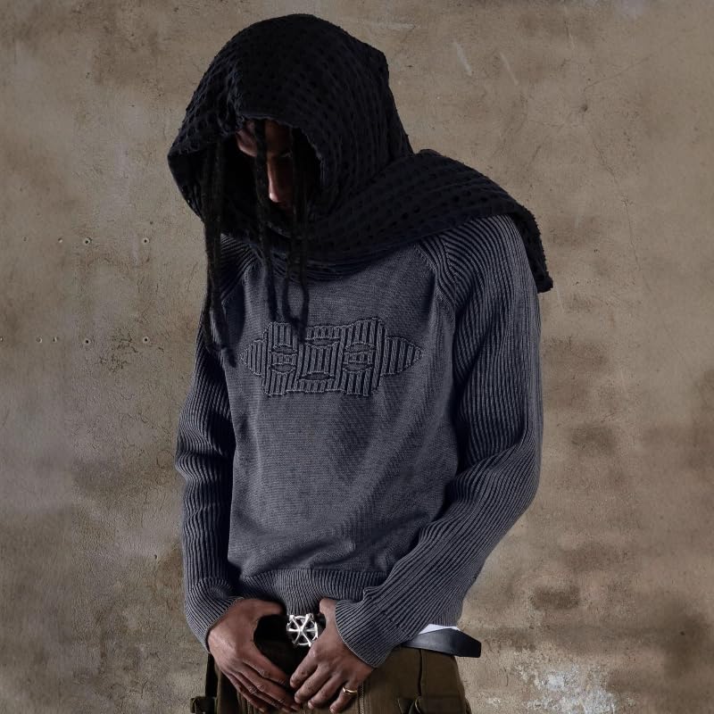 More information about Men's Goth Sweaters Geometric Pattern Crew Neck Knit Pullover Vintage Y2K Knit Casual Pullover Unisex Sweaters
