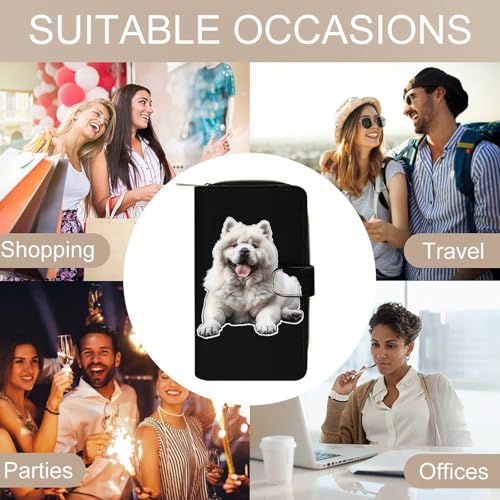 White Chow Chow PU Leather Wallet Portable Coin Purse Lightweight Card Holders Money Clip for Women Men 4