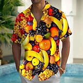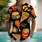 More information about Men's Fruit Food Hamburger Summer Hawaiian Shirt Button Up Shirt Aloha Shirt Short Sleeve Hawaiian Holiday Beach Wear Summer Spring Turndown 3D Print Collared Shirts Front One Pocket Black Orange