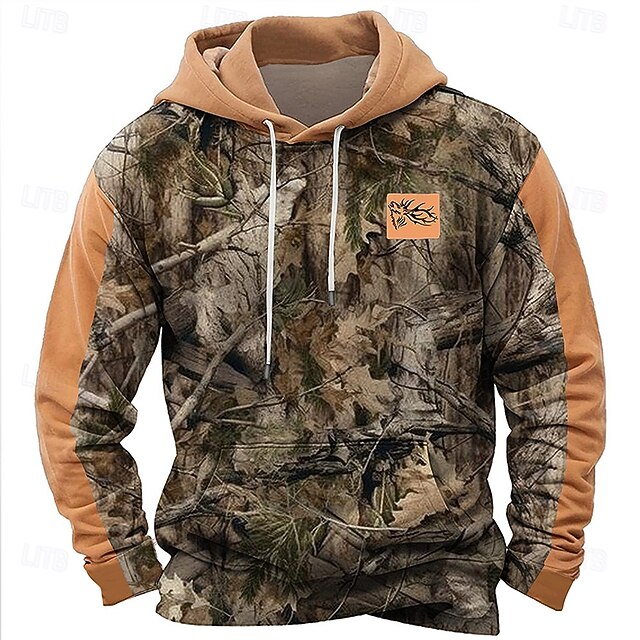 More information about Men's Jungle Hoodies Daily Casual Long Sleeve Hooded Vacation Sports Outdoor Streetwear Black Brown Print Front Pocket Spring & Fall Designer