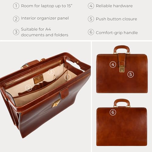 • ✔️ “YOU CAN HAVE ANYTHING YOU WANT IN LIFE IF YOU DRESS FOR IT.” – Edith Head. A stunning leather bag will make you feel confident, assertive, and good-looking. A full-grain leather briefcase is a perfect accessory for lawyers, entrepreneurs, doctors, students, and each and every one who wants to go in style. The briefcase will be a great self-confidence boost for completing your goals and advance your career.