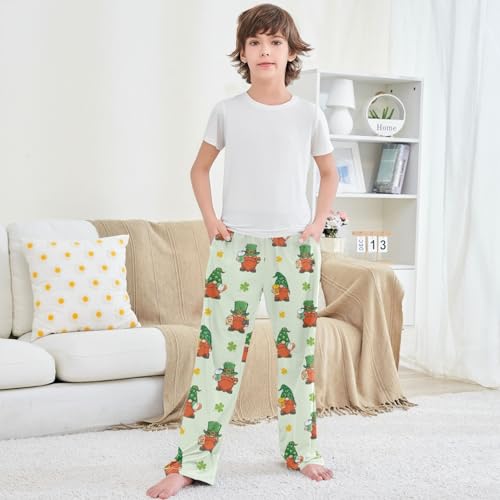 HOT ! Boy's Pants Gnomes Ireland Flag Jogger Pants Elastic Waist Long Bottoms Trousers with Pockets 6-14 Years