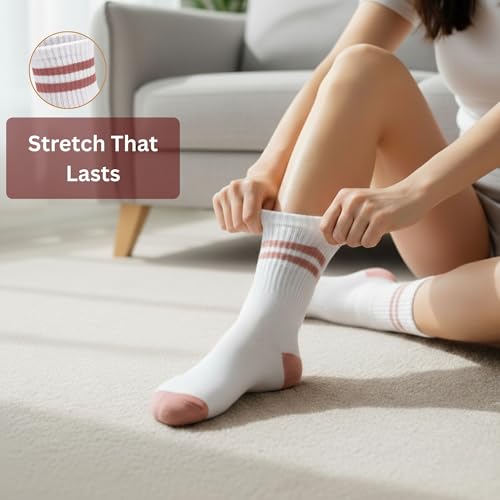 • Cushion Bottom - Experience unparalleled comfort with womens retro socks crew. Each step feels like walking on clouds, making these striped crew socks perfect for extended wear and various activities. The cushion bottom absorbs impact, keeping your feet pampered all day.