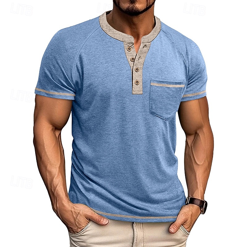 More information about Men's Button T Shirt T Shirt Henley Shirt Short Sleeve Shirt Short Sleeve Henley Summer Color Block Solid / Plain Color Fashion Designer Fashion Vacation Street Going out Navy Black White Top Tee for