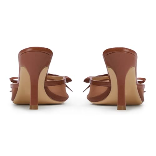 Uniquelly Kitten Heels for Women Closed Toe Stiletto Heels Bow Mesh Pointed Toe Mules Sexy Dressy Slip On Party Wedding Pumps Dress Shoes 4