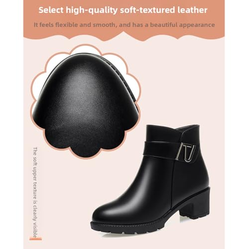 Women's Winter Ankle Boots Waterproof Warm Round Toe Chunky Heel Side Zipper Fur Lined Soft Sole Work Snow Boots 5