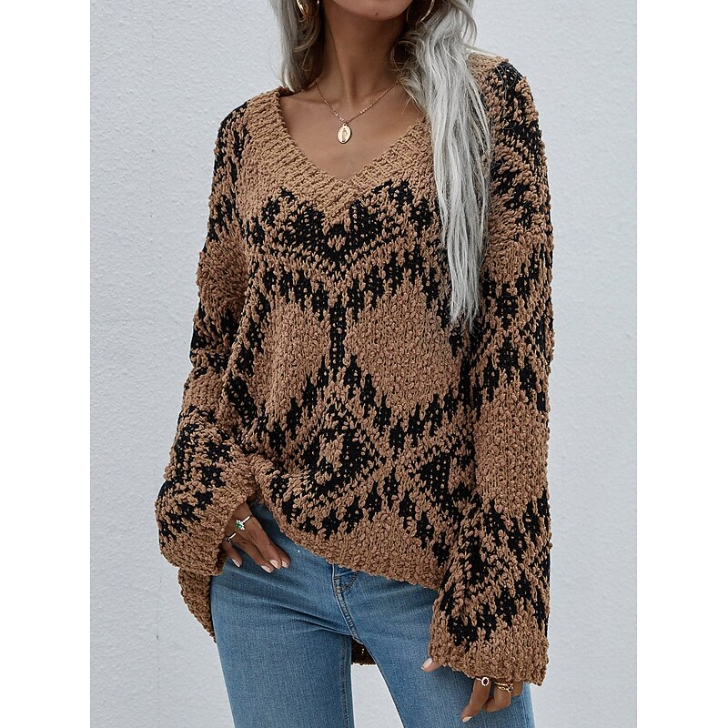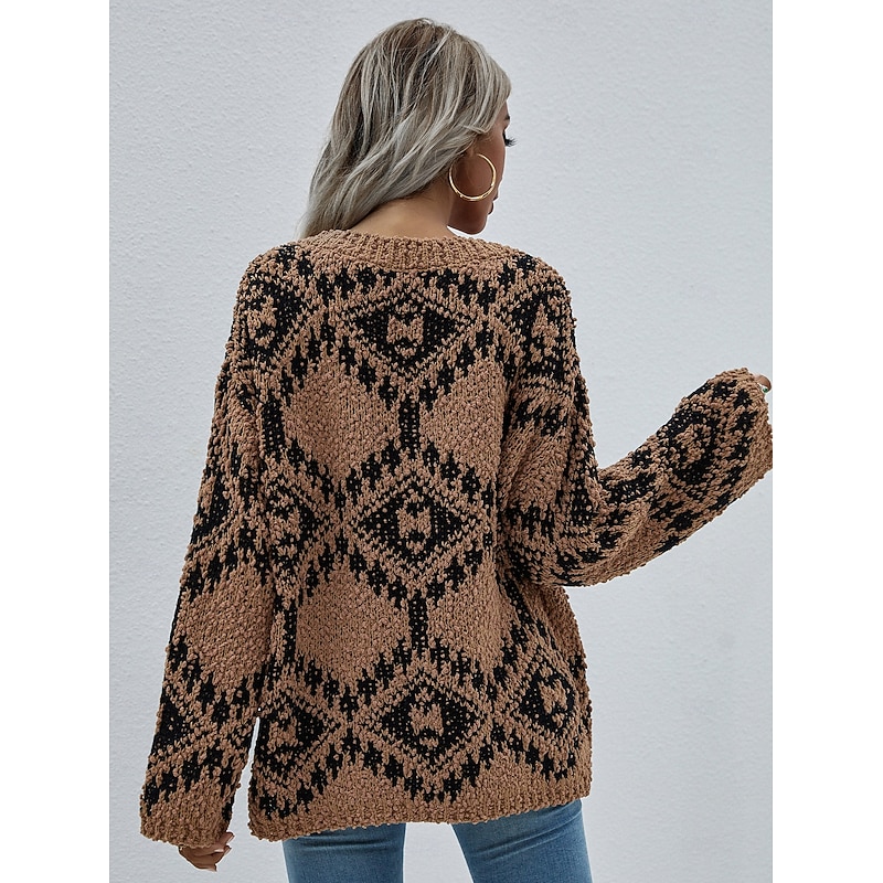 More information about Women's Sweater Daily Casual Geometric Print Crew Neck Knitted Textured Long Sleeve Long Tops Knit Outdoor Work White Purple Fall Winter