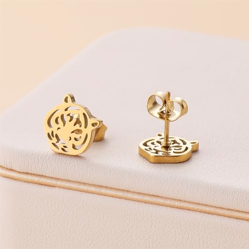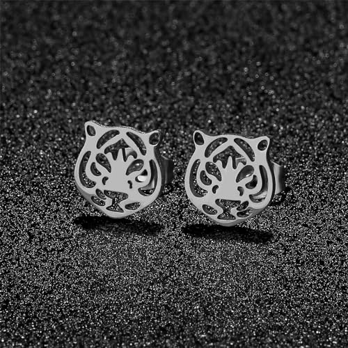 WCRAZYE Stainless Steel Animal Stud Earrings for Women Simple Tiger Head Stud Earrings Punk Hollow Animal Cartilage Pierced Hypoallergenic Studs Earring Fashion Jewelry Gifts 5
