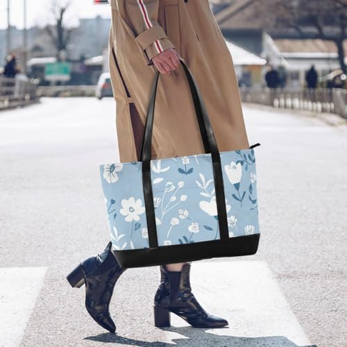 Old Style Pastel Floral Baby Blue Waterproof bags for laptops for women with zipper work purses for Travel Gym Vacation with bolsas para computadoras de mujer 7