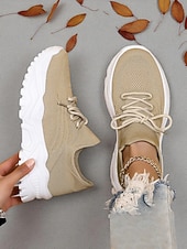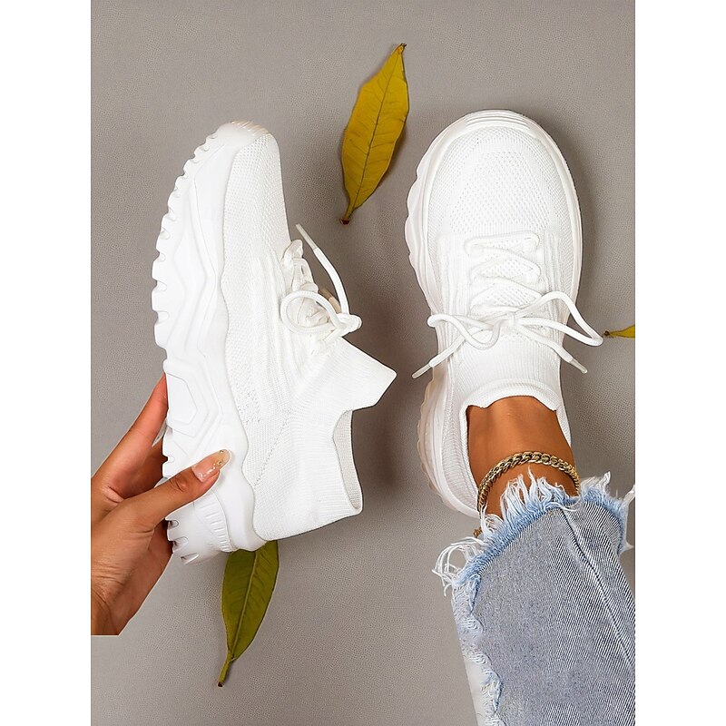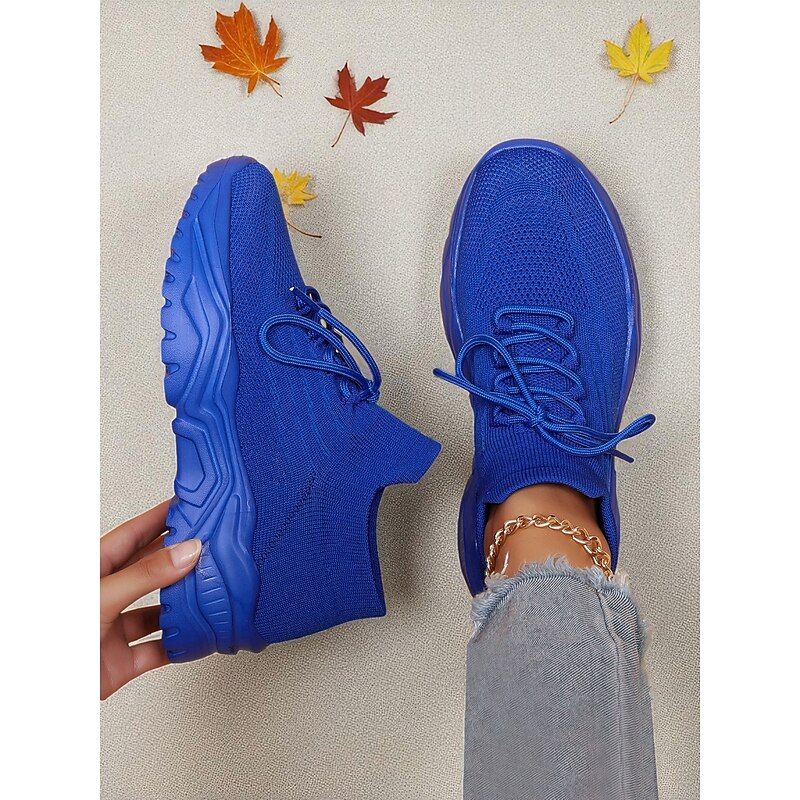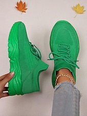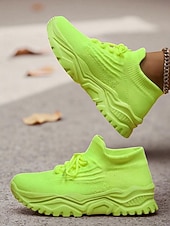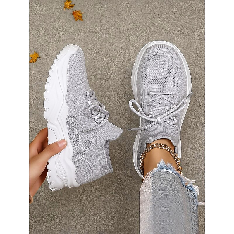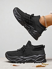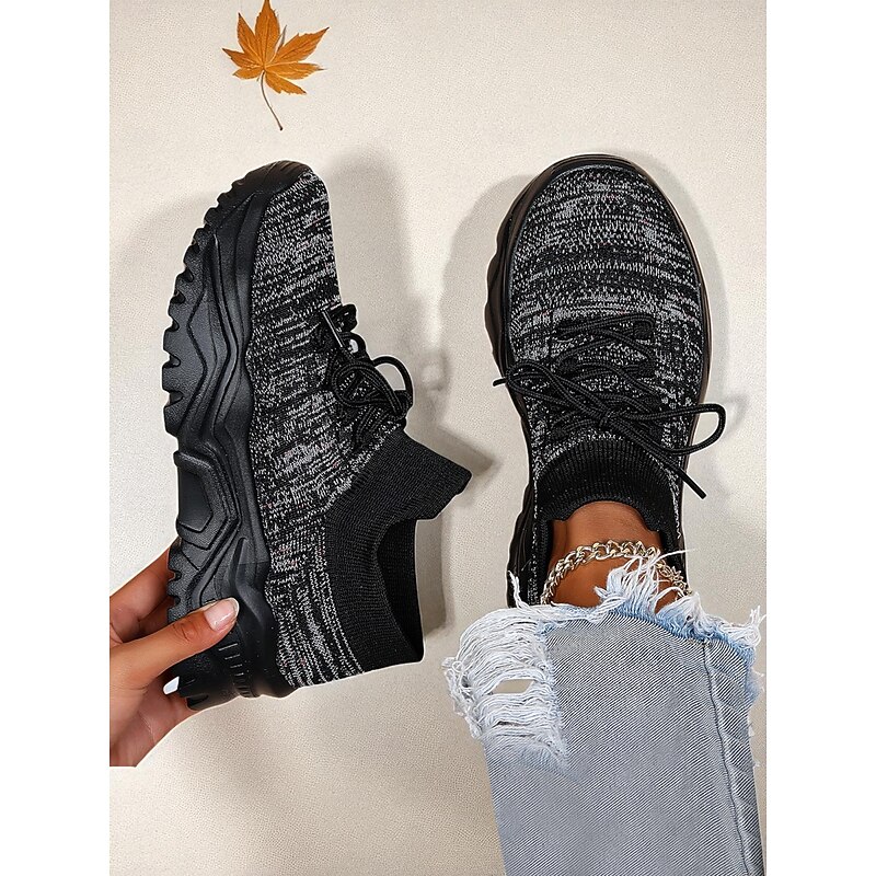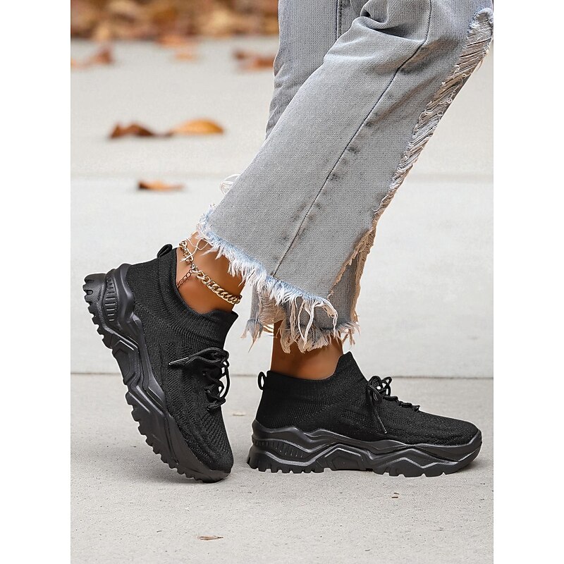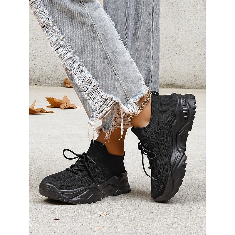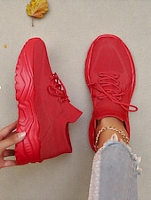 More information about Women's Red Flyknit Chunky Sole Sneakers – Breathable Lace-Up Sports Shoes for Casual Streetwear and Gym Training