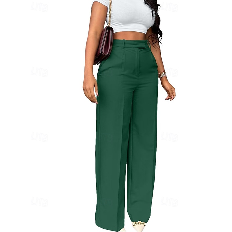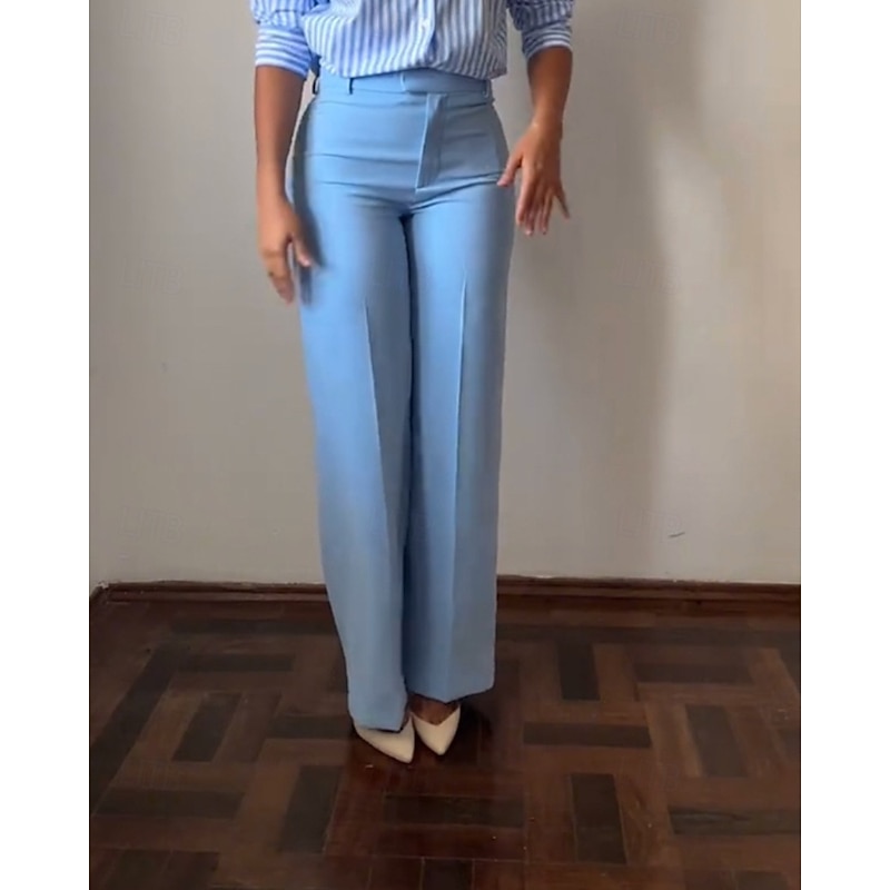 More information about Women's Dress Pants Wide Leg Streetwear Casual Full Length Natural Plain Pocket Elastic Waist Comfy Outdoor Comfortable Outdoor Vacation Streetwear Dark Brown Wine Light Sky Blue Black Fall Regular