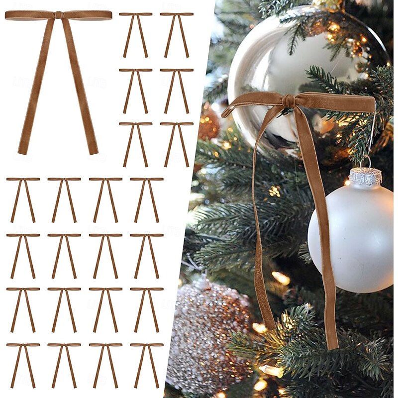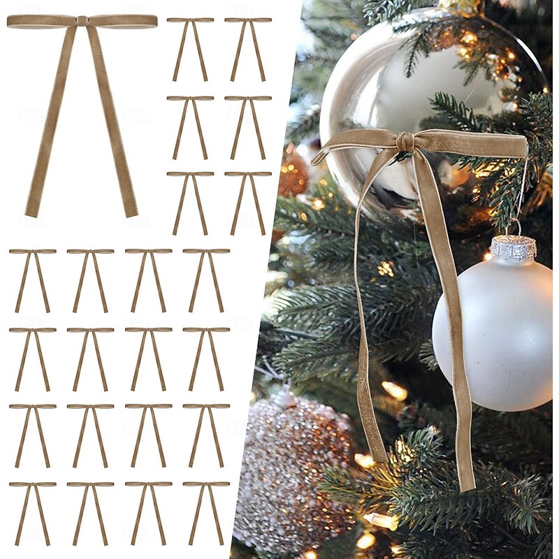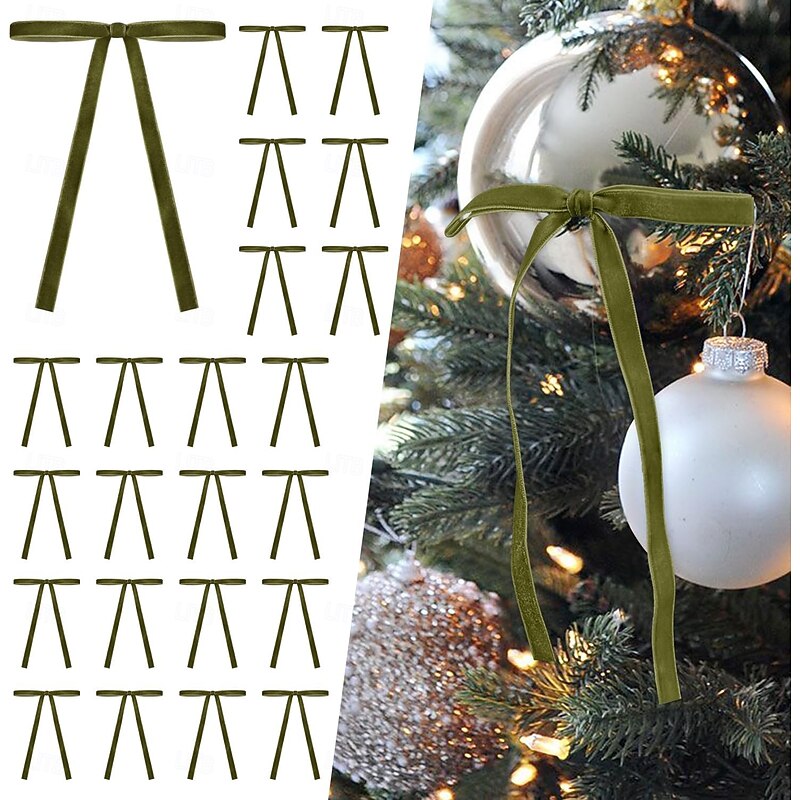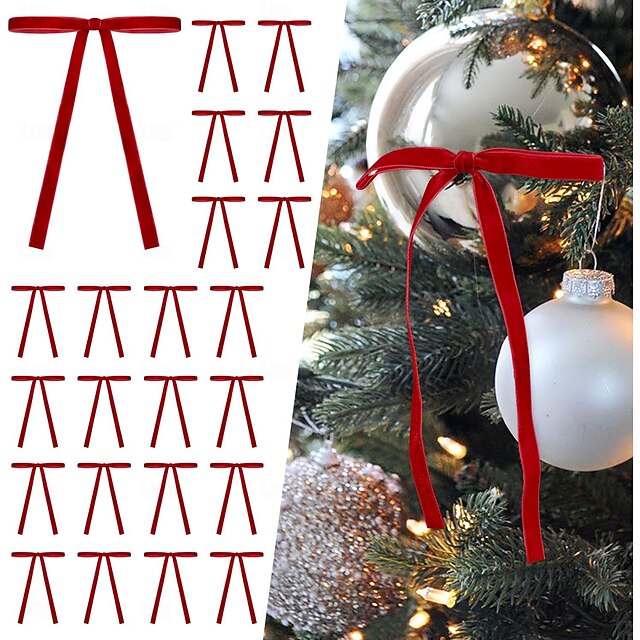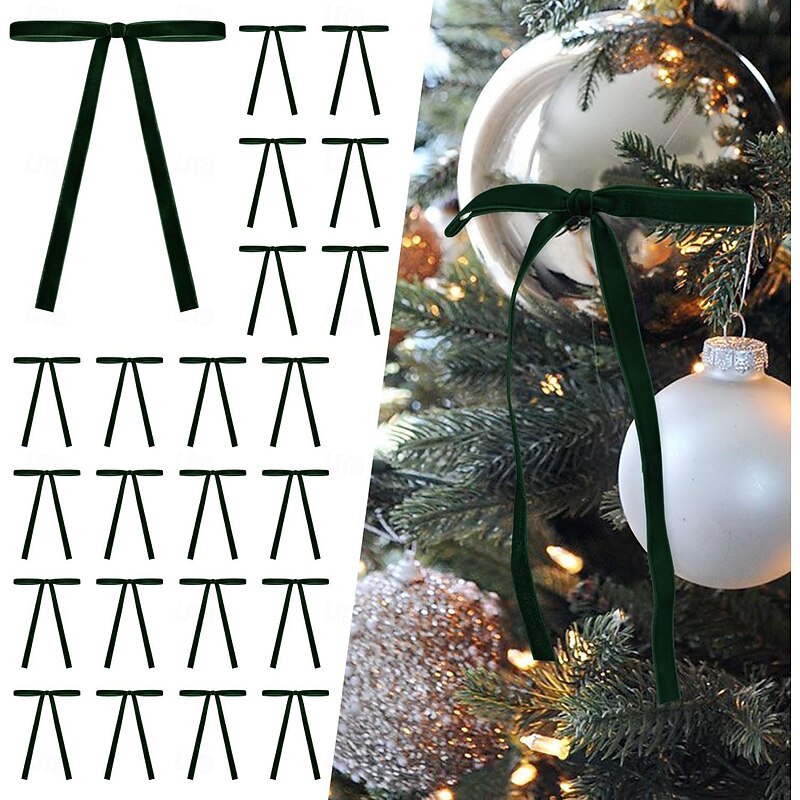Highlights 【Size for Christmas Tree】The material width is 3/8'', the bow is 5 inch width and 7 inch length, looking lovely and delicate, suitable for christmas tree decorations. 【24 Pieces】You will get 24 pieces velvet bows, they can meet your needs of decorating christmas tree. 【Thick Velvet Fabric】Make of high-quality velvet material, giving you a soft and smooth touch, giving you a warm festive atmosphere. 【Occasions】It's always a good idea to tie it to your christams tree, wreath, gifts, stockings, and so on. 【Vintage and Elegant】They make your tree look more vintage and elegant because of the classic style.