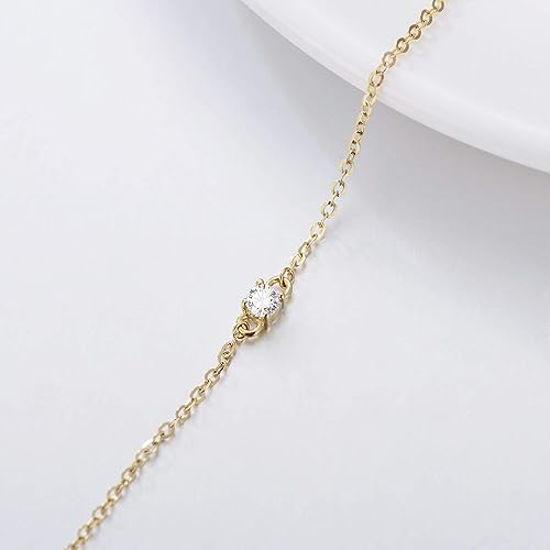 More information about 14K Solid Gold Bracelet for Women, Real Gold Thin Bracelet Cubic Zirconia Bracelet Birthday Anniversary Mothers Day Jewelry Gifts for Wife/Mom/Grandma/Girlfriend, 6.5+1+1 inch