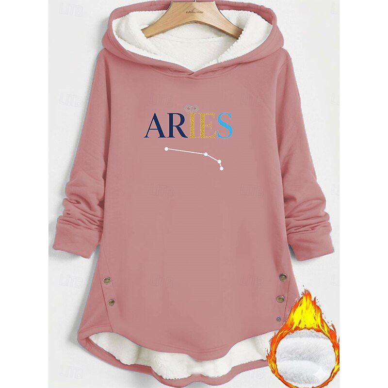 More information about Women's Pullover Hoodie Sweatshirt Letter Warm Casual Long Sleeve Hooded Long Tops Street Dailywear Holiday Buttons Print Black Dark Pink Blue Gray Fall Winter