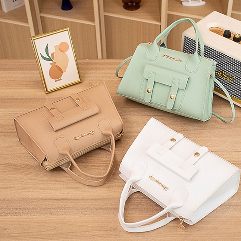HOT ! Women's White Faux Leather Handbag with Top Handle and Front Buckle Detail – Elegant Structured Satchel for Office, Travel, and Daily Use