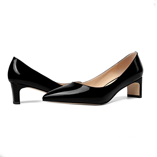 ROSERWISH Womens Slip On Patent Pointed Toe Dating Chunky Low Heel Pumps Dress Shoes 2 Inch 5