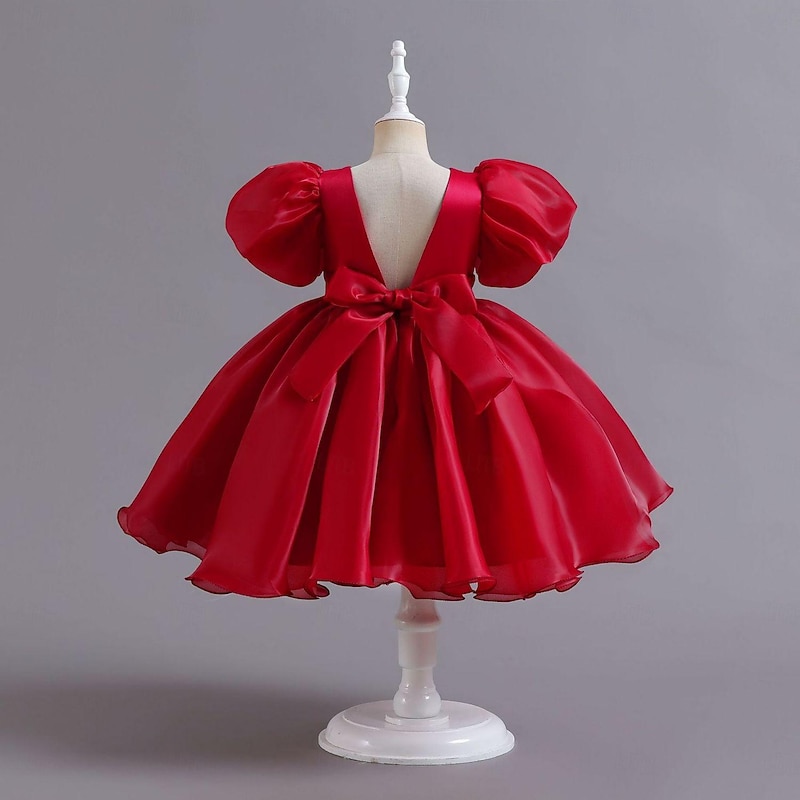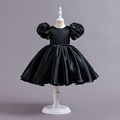 More information about Toddler Girls' Party Dress Solid Color Short Sleeve Performance Party Cute Princess Polyester Knee-length Summer Spring 3-7 Years Black White Pink