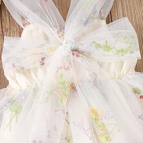 ODASDO Infant Baby Girl Tulle Romper Flower Embroidery Princess Bodysuit with Headband Birthday Party Cake Smash Outfit 6