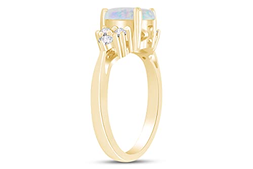 • GEMSTONE : Oval Cut Synthetic Opal And Round Cut White Cubic Zirconia, Stone Color : White, Total Carat Weight : 1.00 Carat (Cttw), Stone Setting : Prong Setting Type