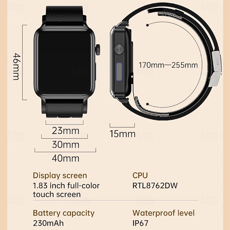 $98.99 - 696 P300 Air Pump Blood Glucose Watch Smart Watch 1.83 inch Bluetooth Pedometer Call Reminder Sleep Tracker Compatible with Android iOS Men Hands-Free Calls Message Reminder IP67 40mm 2025. Shop for cheap Smart Wristbands online? Buy at lightinthebox.com on sale today!