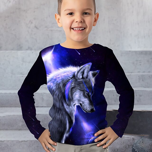 HOT ! Boys 3D Animal Wolf T shirt Tee Long Sleeve 3D Print Fall Winter Sports Fashion Streetwear Kids 3-12 Years Outdoor Casual Daily Regular Fit