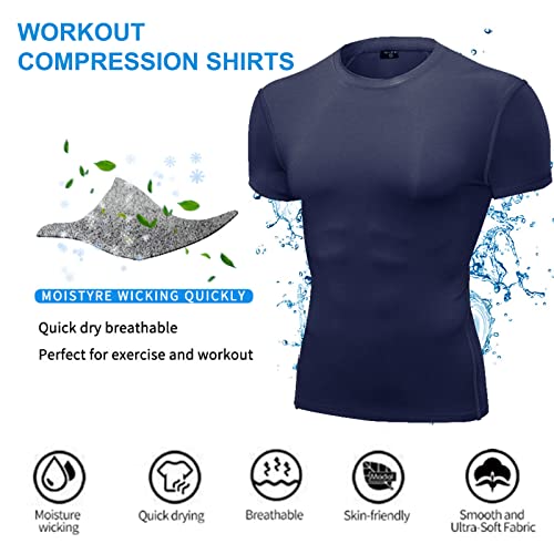 • ➤【MULTI-VERSATILE GYM SHIRTS】: Perfect option during various indoor activities and outdoor. You can also use them as undershirts and the fit and compression make them very comfortable for every day wear. These basic compression short sleeve t shirts can be thought of as a gift to husband, family or friends.