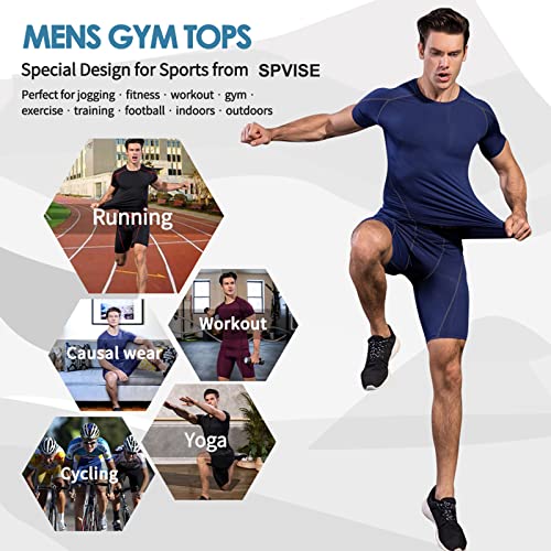 SPVISE 1 or 2 Pack Men's Compression Shirts Short Sleeve Athletic Workout T-Shirt Running Tops Cool Dry Active Gym Undershirt 6