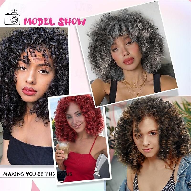 $21.99 - Short Curly Wigs for Black Women - Ombre Brown Color Afro Curly Synthetic Wigs with Bangs Halloween Wigs 2025. Shop for cheap Party Wigs online? Buy at lightinthebox.com on sale today!