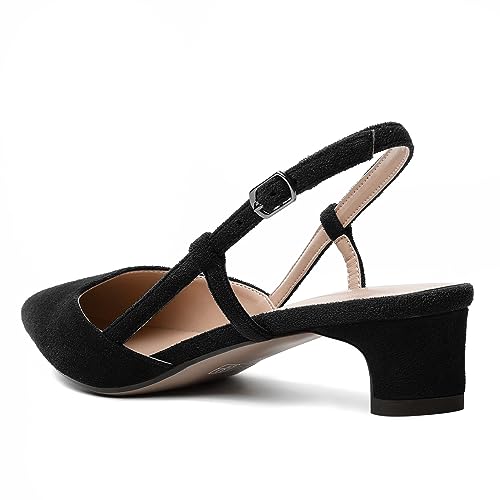 MODENCOCO Womens Buckle Dress Dating Fashion Suede Slingback Pointed Toe Chunky Low Heel Pumps Shoes 1.5 Inch 3