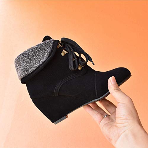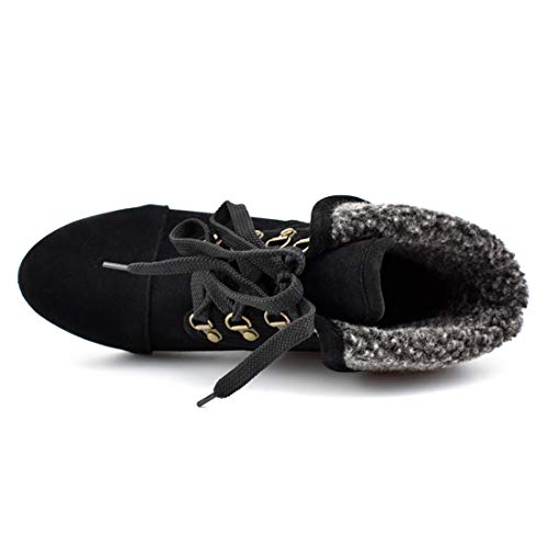 • ➤UNIQUE QUALITY & COMFORTABLE】: Womens Ladies Fashion Round Toe Cuff Winter fur Ankle Boots Shoes, Lace up Easy On/Off; Anti-slip Slip Pull On Platforms Wedge Lightweight, High Strength, Good Fexibility, Finished with Lightly Cushioned for All Day Comfy and Eco-Friendly Design. Instep ventilation pores for your comfort.