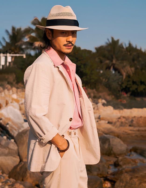 • Smart Two-Button Jacket Design:The long-sleeve jacket features a refined two-button closure with notch lapels, creating a polished look perfect for summer weddings, garden parties, or upscale casual events. The unlined construction ensures maximum comfort in warm weather.