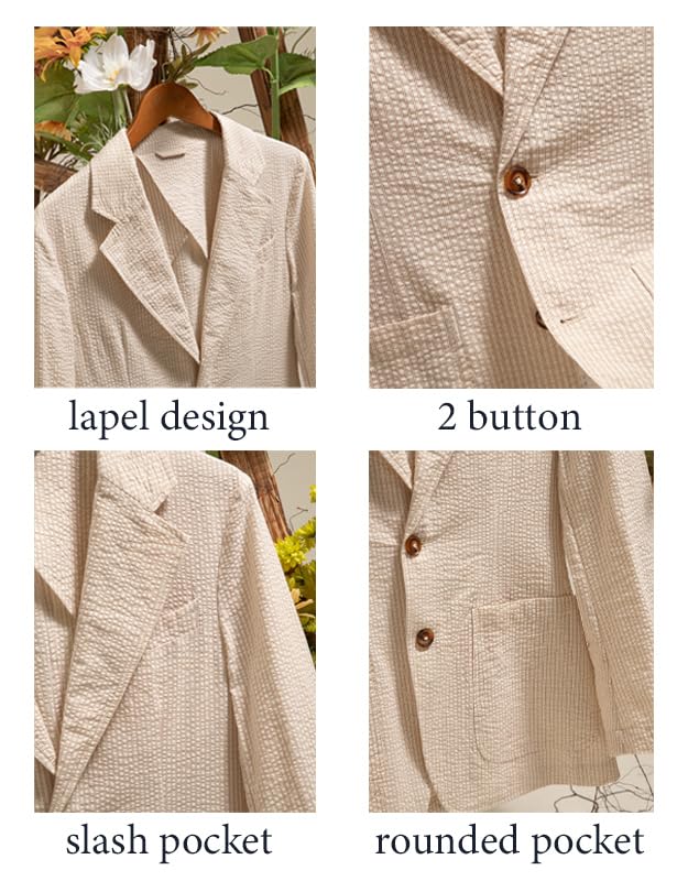 More information about Retro Men's Striped Seersucker Suits Grooms Lightweight Sear Sucker Suit for Wedding Slim Fit Jacket & Shorts