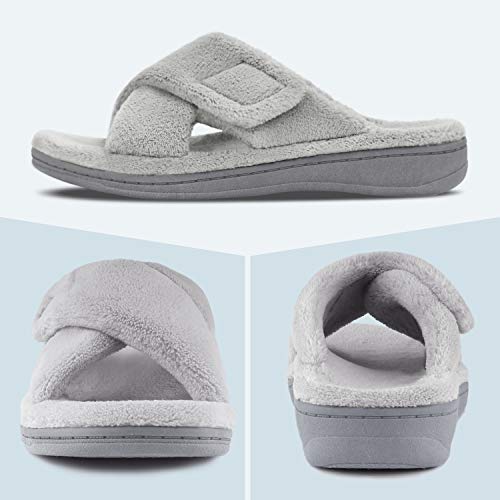 • Cross-band Style Design: Open Toe and Adjustable Cross-band style design could not only adjust the tightness but also could add the stability of the slippers, not easy to fall off. Relieve sore feet, and can be worn with or barefoot.