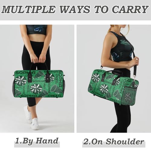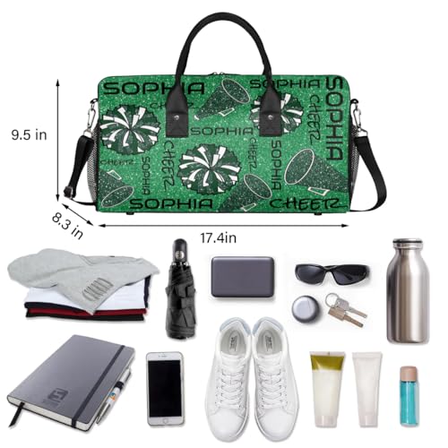 HOT ! Custom Cheer Duffle Bag, Personalized Cheer Bag for Cheerleader, Gym Bag with Name, Travel Duffle Bag Carry On Weekender Bag Glitter Green