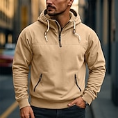 More information about Men's Hoodie Quarter Zip Hoodie Tactical Hoodie Black Navy Blue Camel Green Hooded Plain Patchwork Sports & Outdoor Casual Daily Streetwear Cool Sportswear Fall Winter Clothing Apparel Hoodies