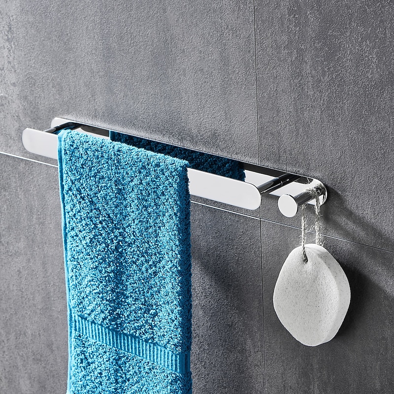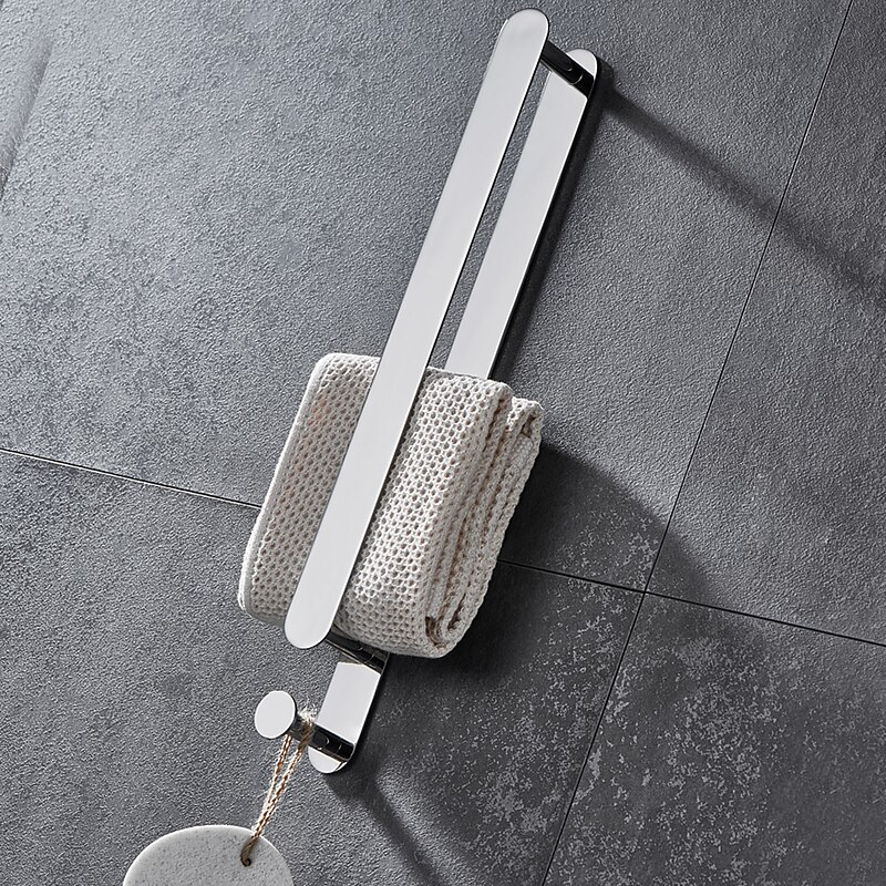 Multifunctional Towel Bar with Hook Stainless Steel Electroplated and Polished Finished Bathroom Shelf Self-adhesive Silvery 1pc 3